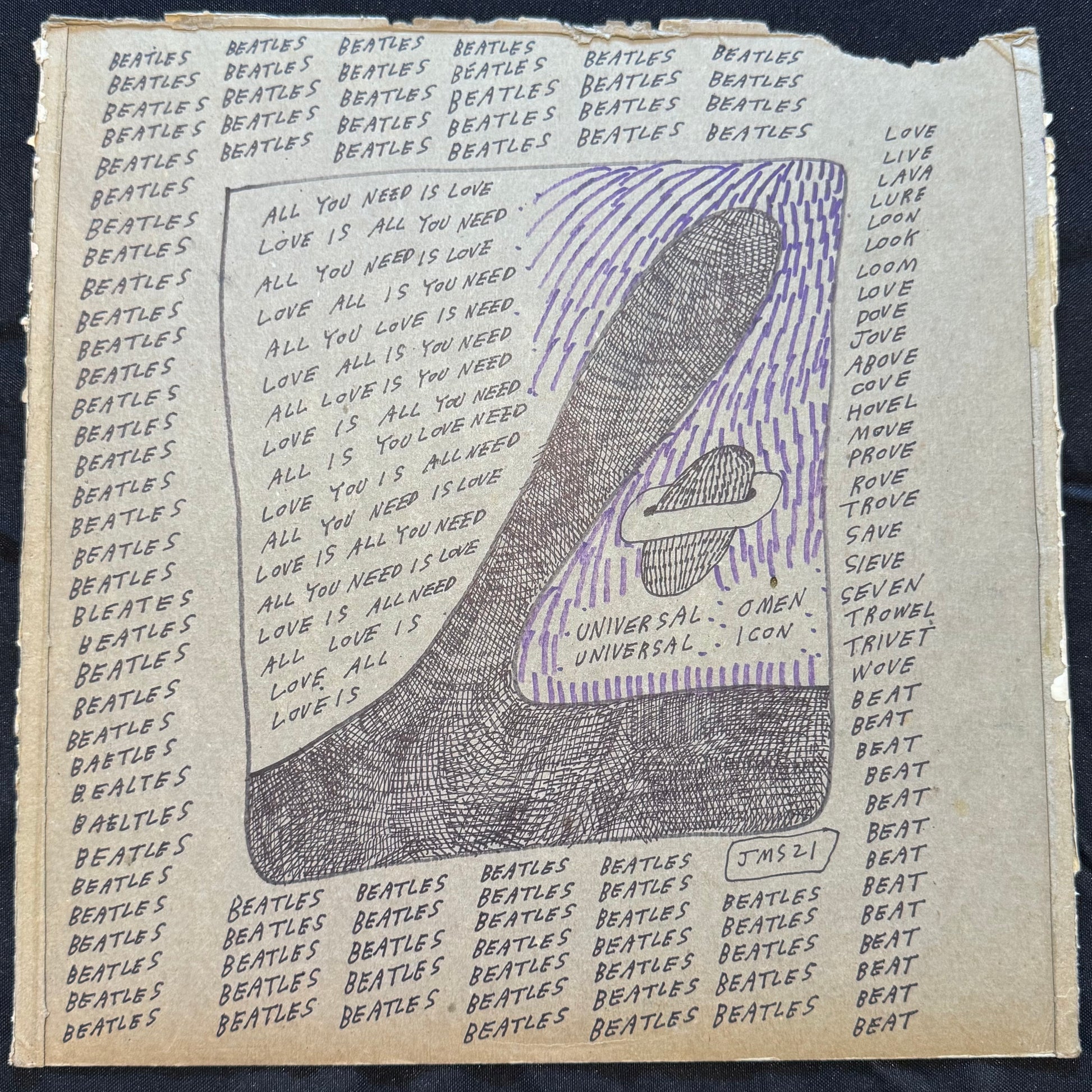 2021, 12" x 12" Mixed Media on Cardboard Album Sleeve