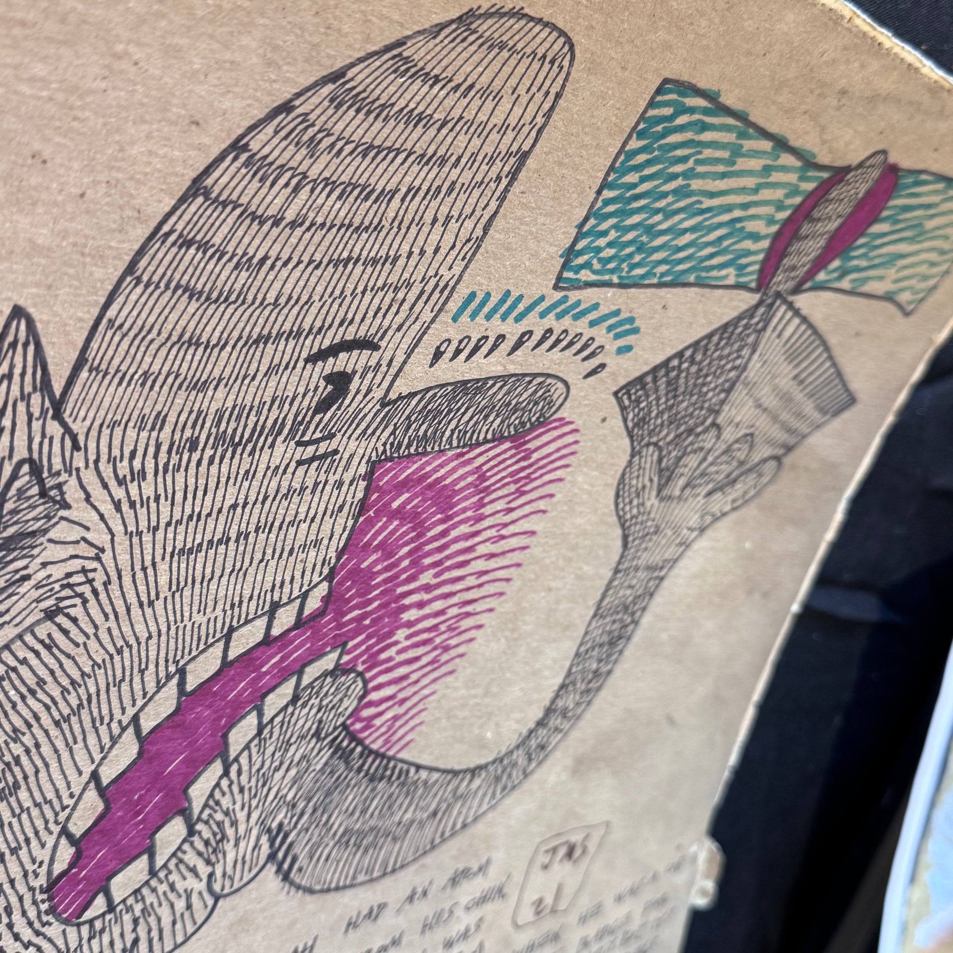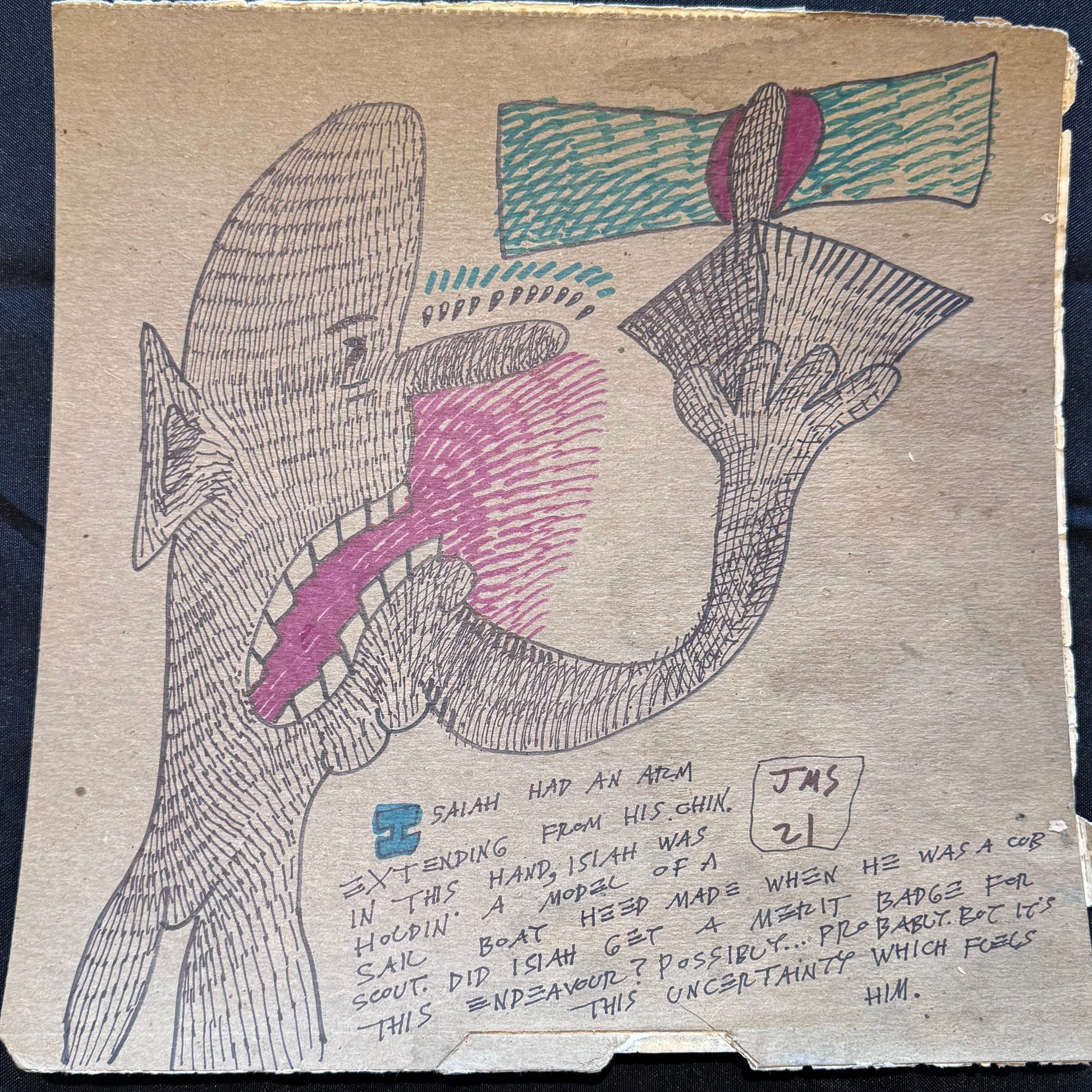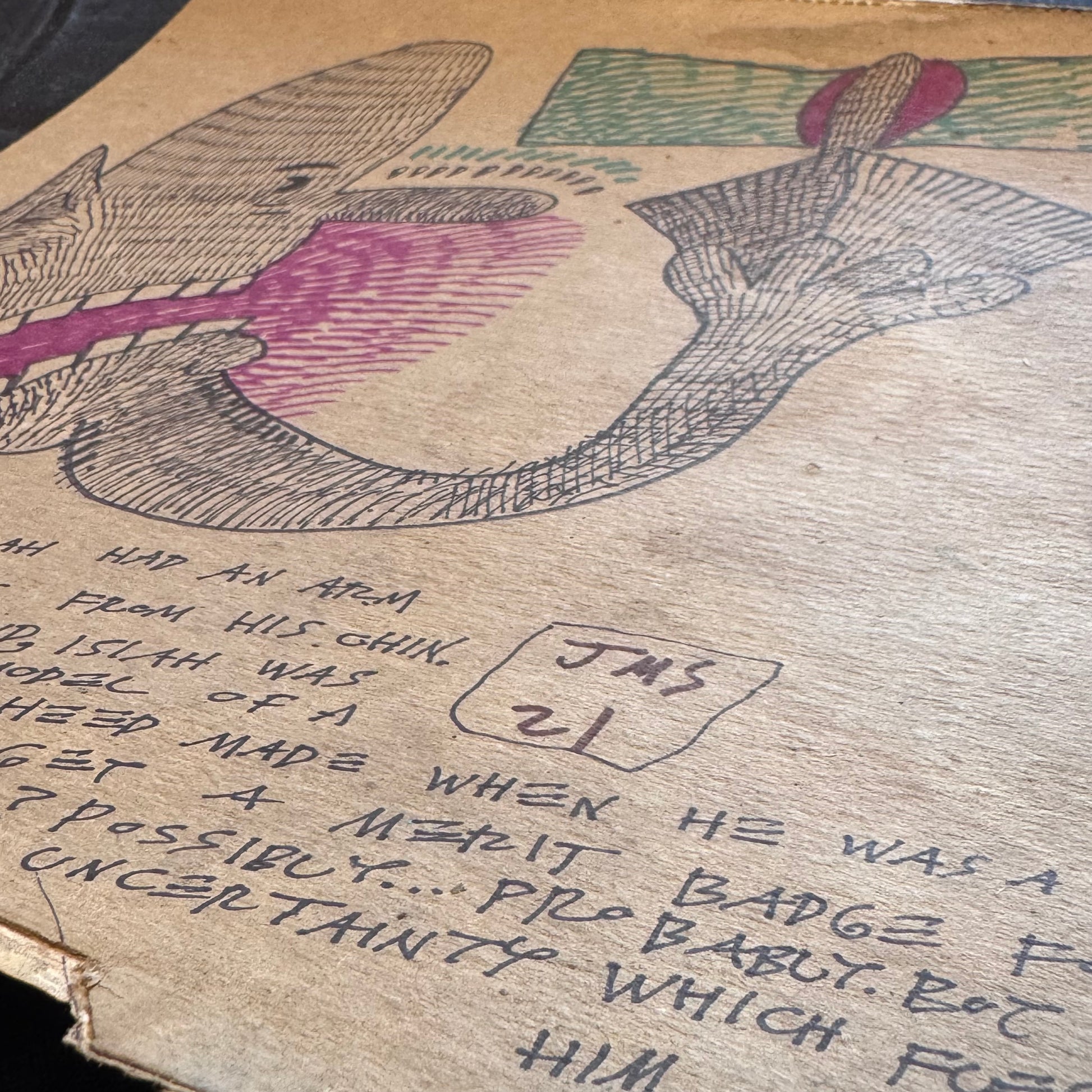 2021, 12" x 12", Marker and pen on cardboard album cover