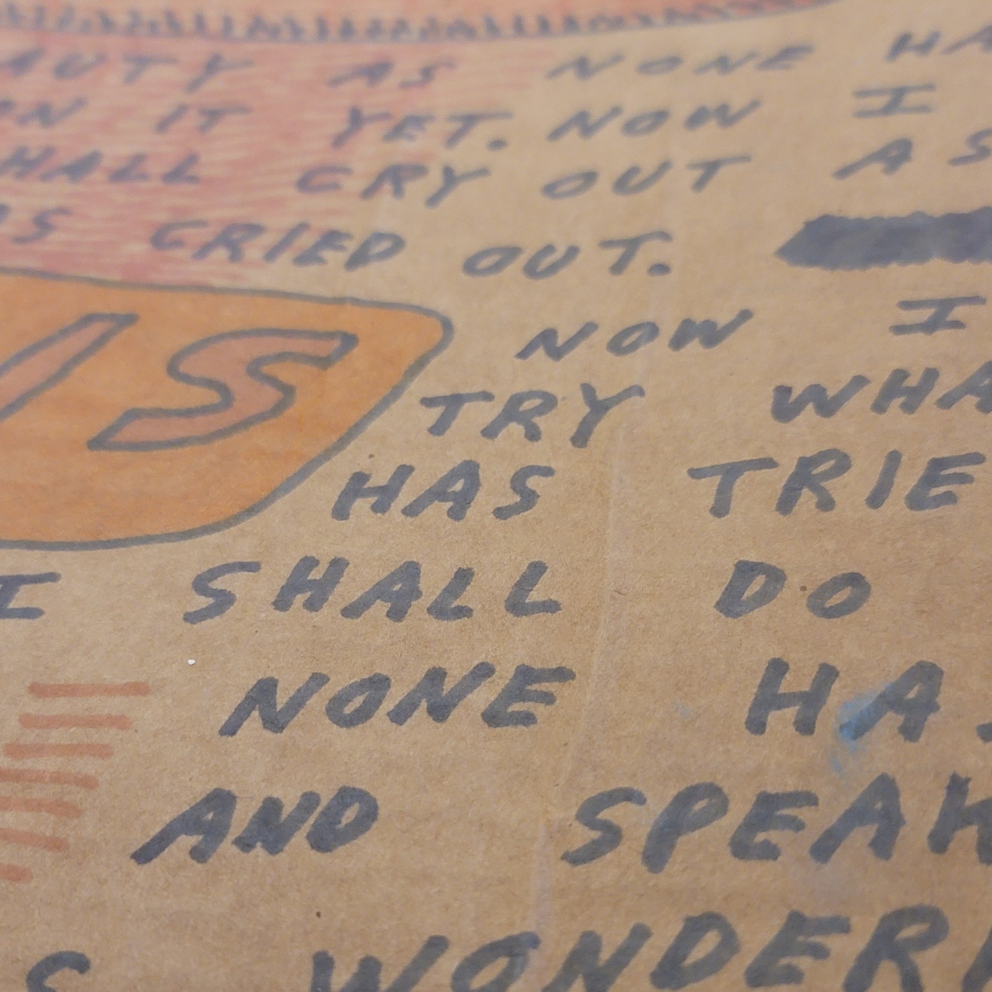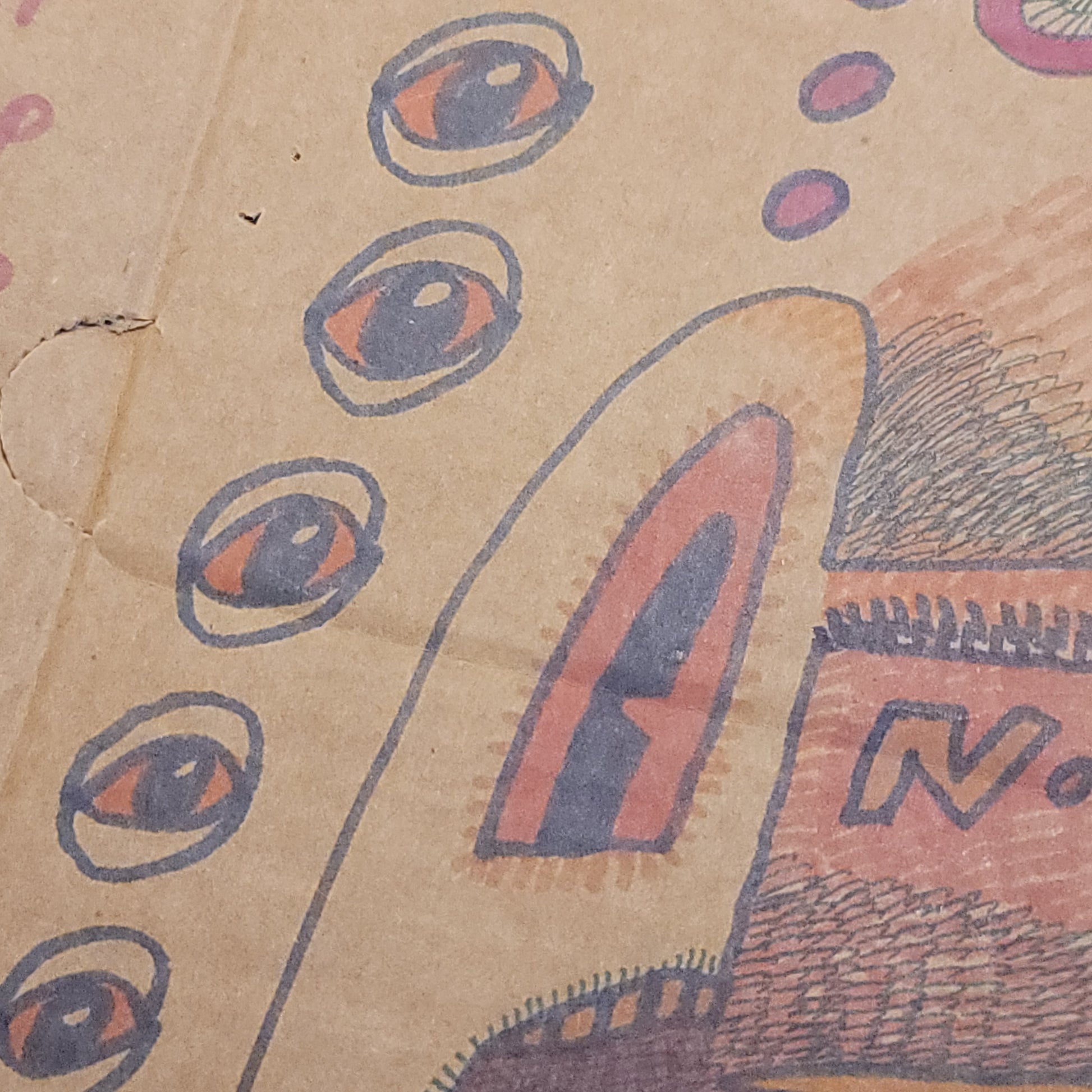 2010s, 18" x 20", Marker and Pen on Cardboard pizza box
