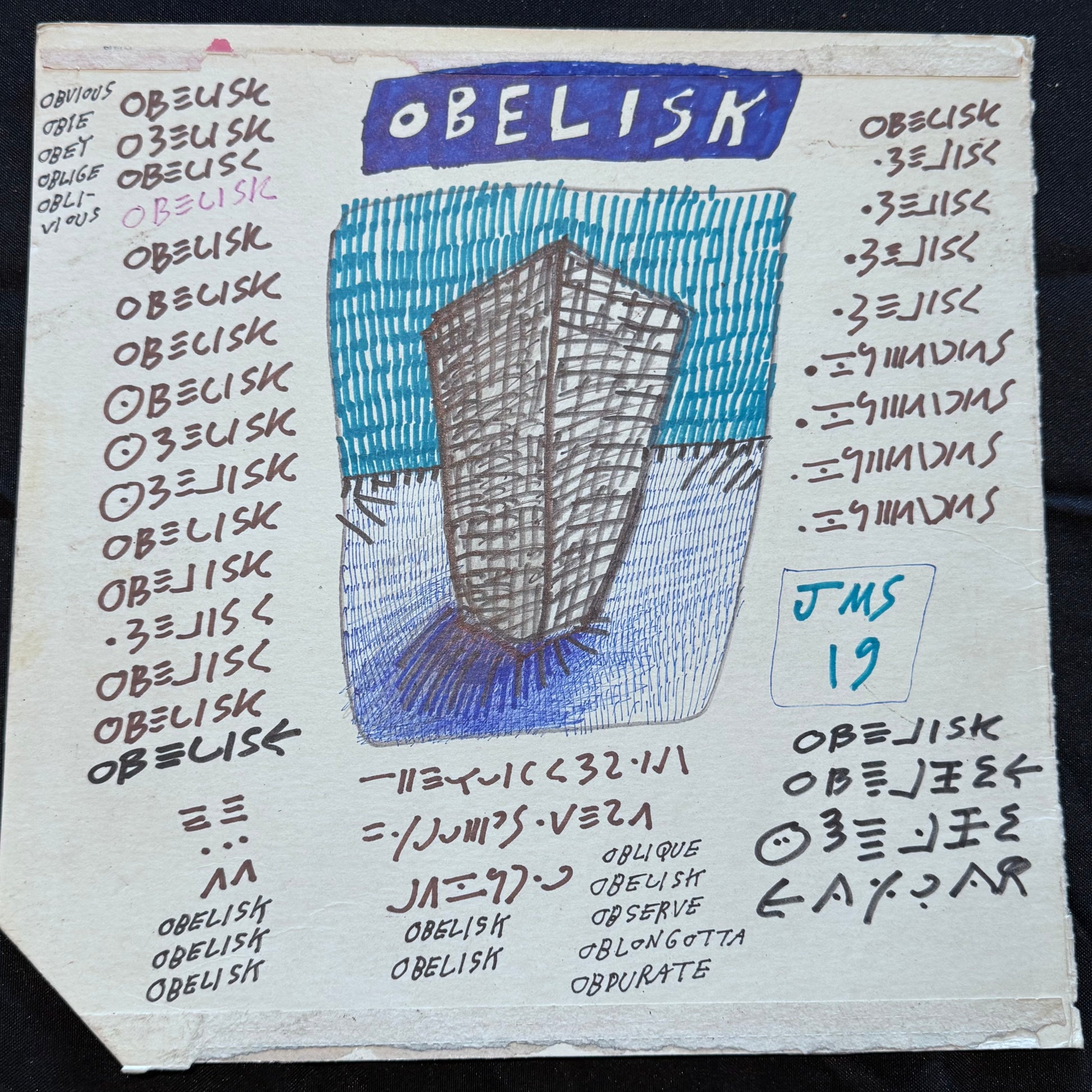 2019, 12" x 12", Marker and pen on cardboard album cover