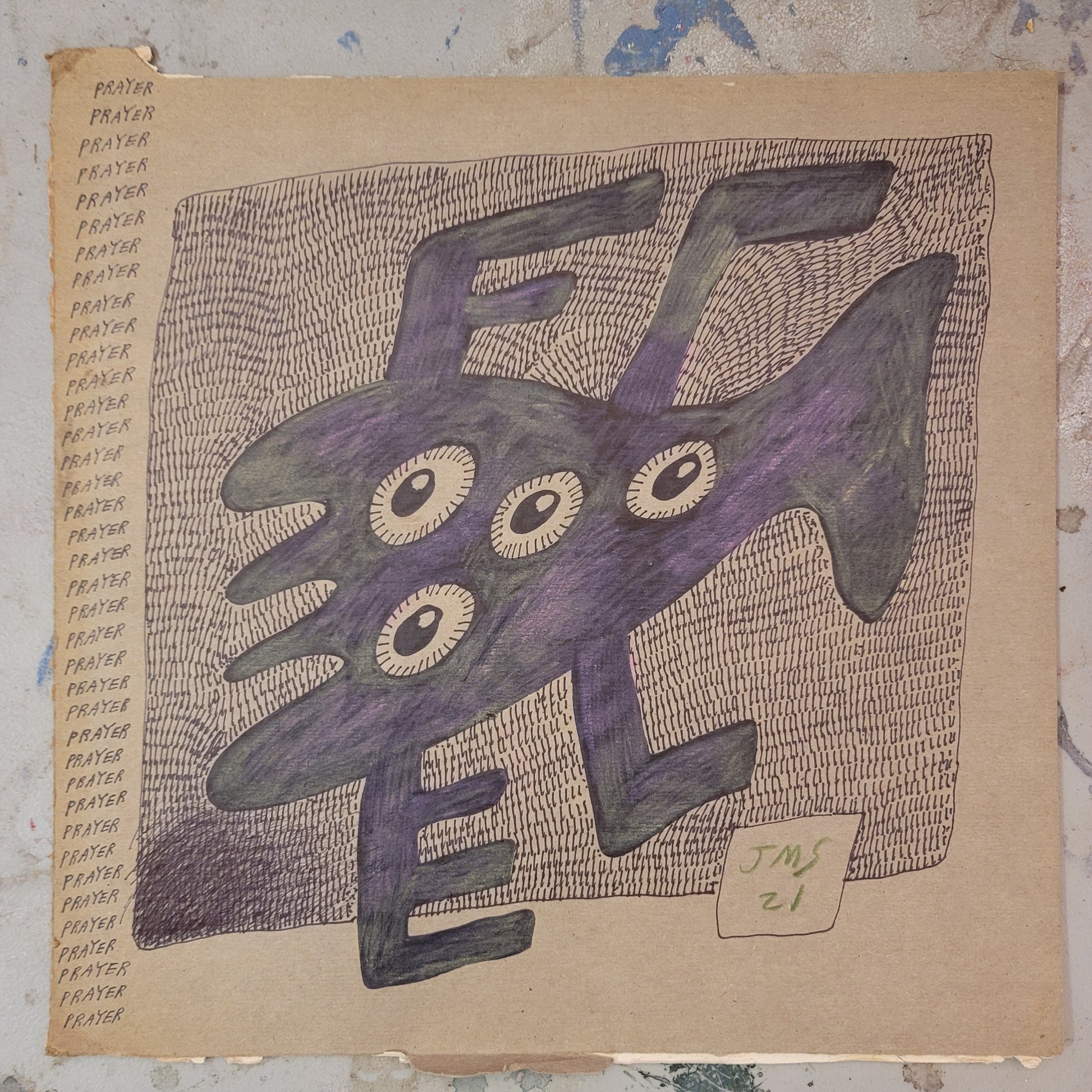 2021, Mixed media (pen and marker) on vinyl album cover, 12" x 12"